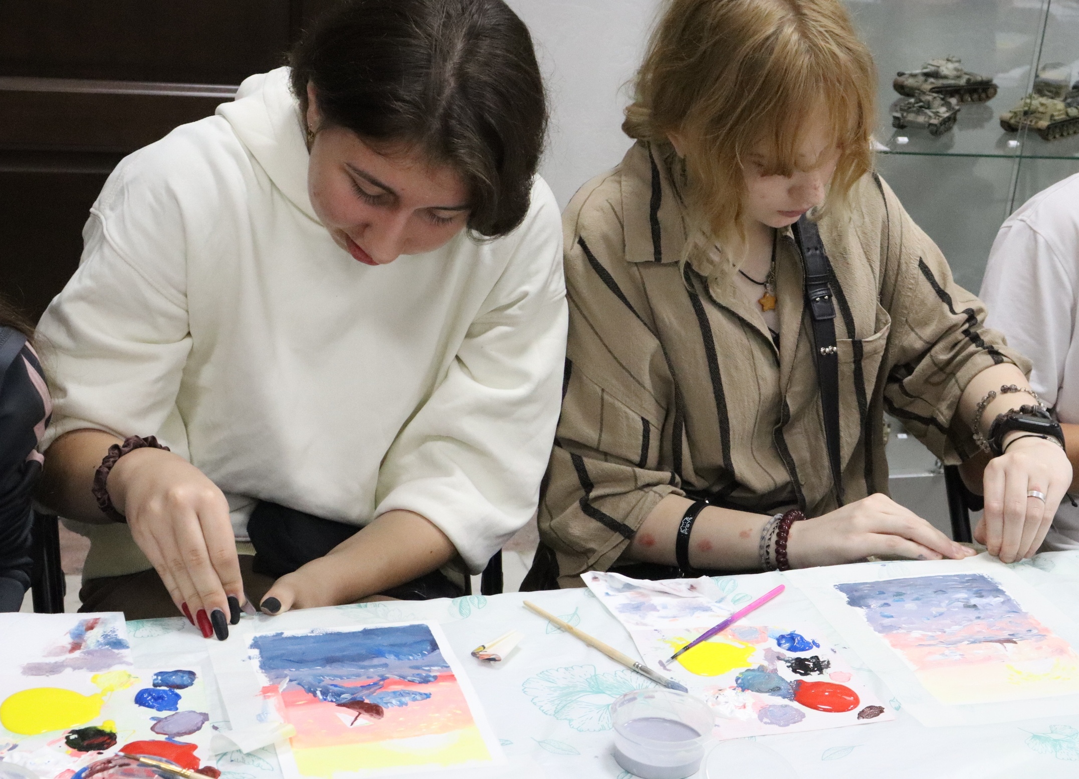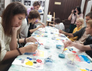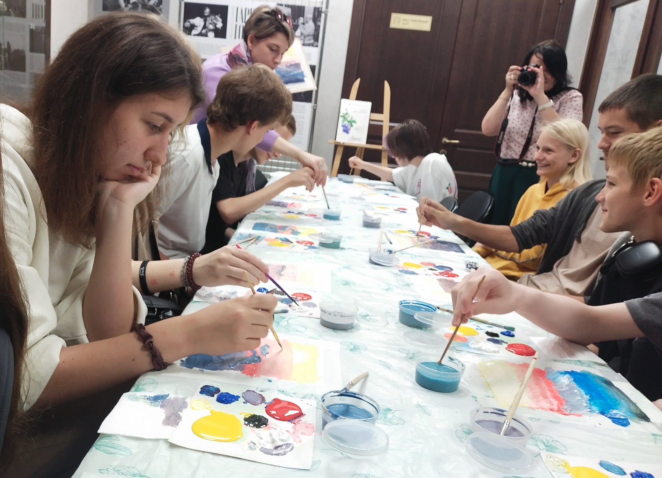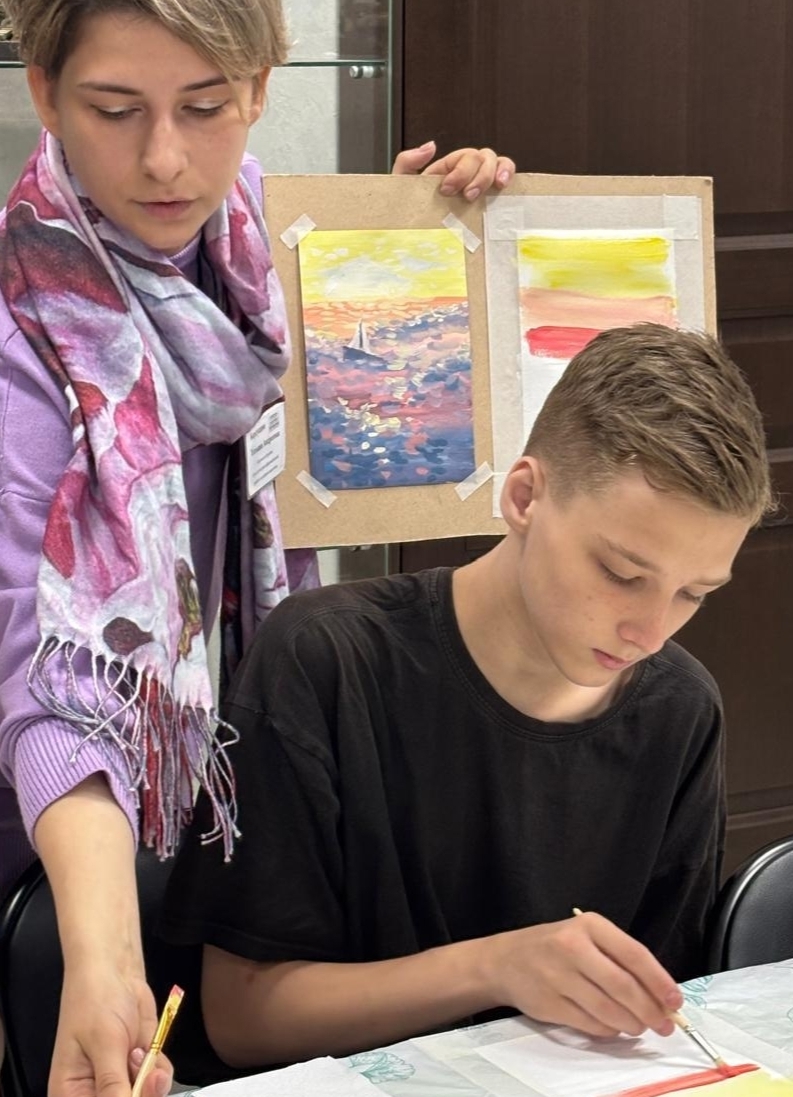 Экскурсовод Татьяна очень проникновенно поведала истории про каждую картину. Она смогла разжечь интерес у всех посетителей выставки и профессионально отвечала вопросы! Забавно было наблюдать, как менялись лица подростков в ходе рассказа. Казалось все, цель достигнута, но музей для нас приготовил ещё одну вкусную историю - мастер-класс по живописи.