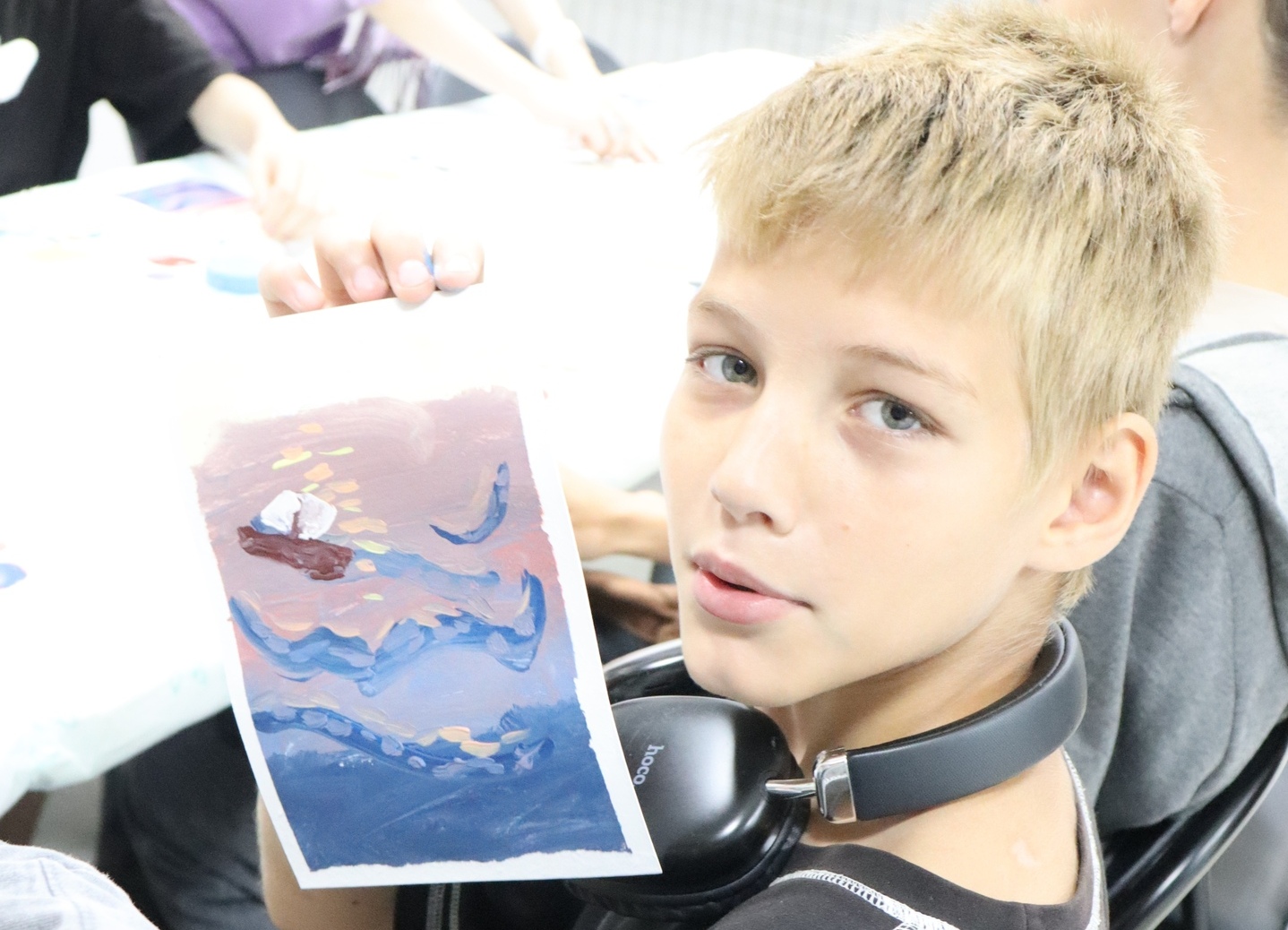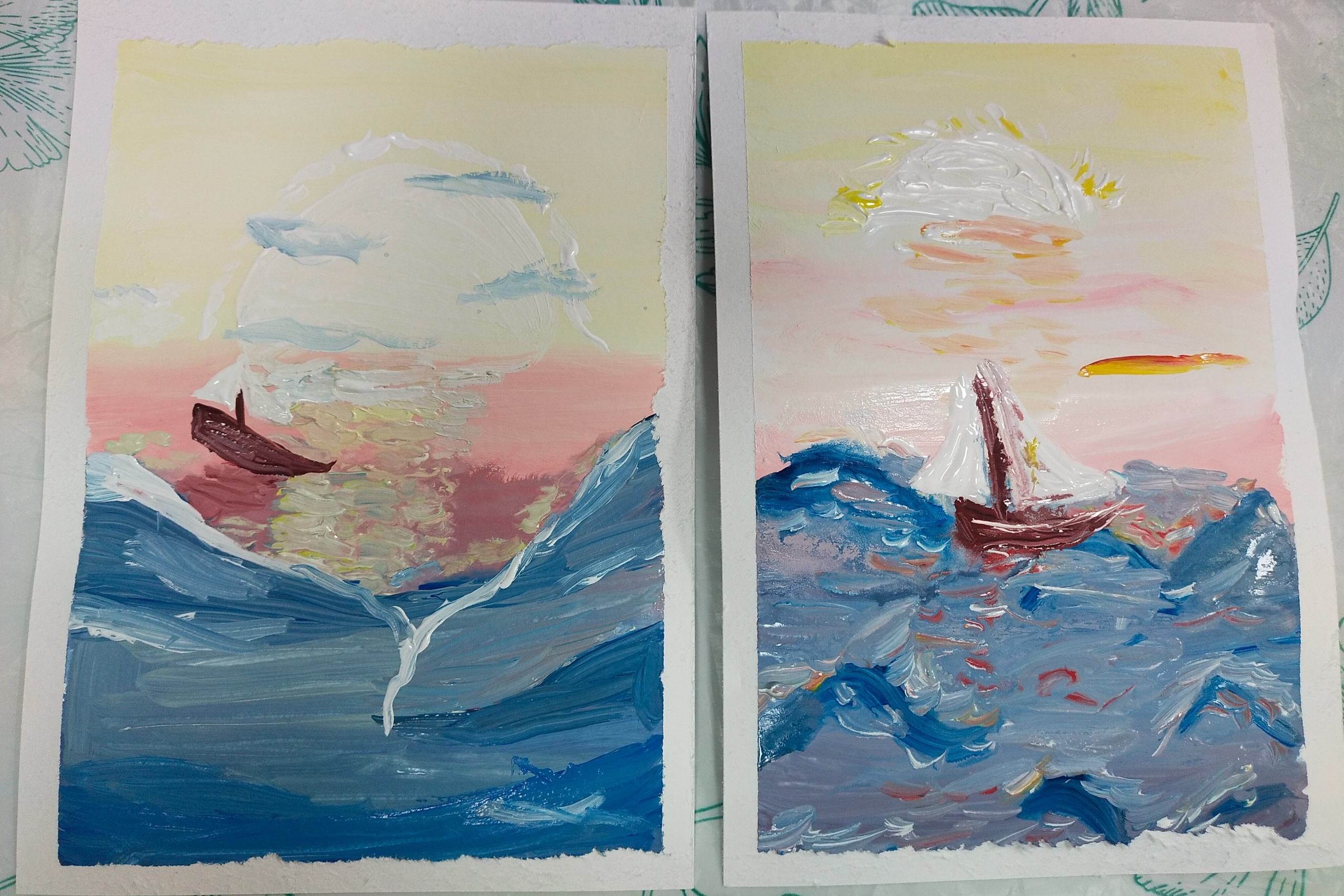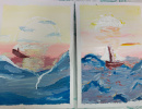 Одно дело лицезреть картины, а другое, самим рисовать картину маслом! В этот момент художник внутренне становится тебе ближе и понятнее. На час все превратились в живописцев-маринистов.