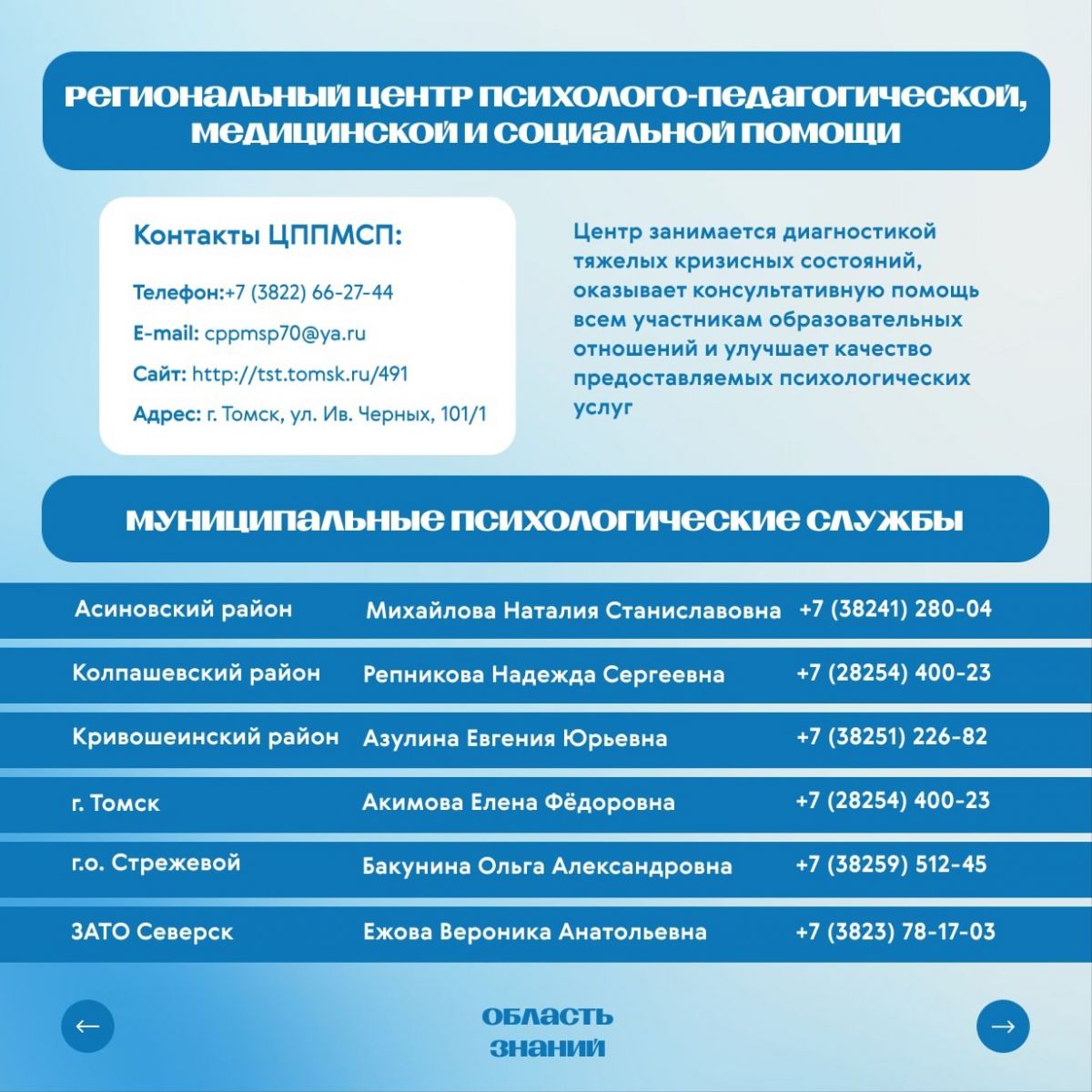 - Электронная почта: seversk-uo@gov70.ru