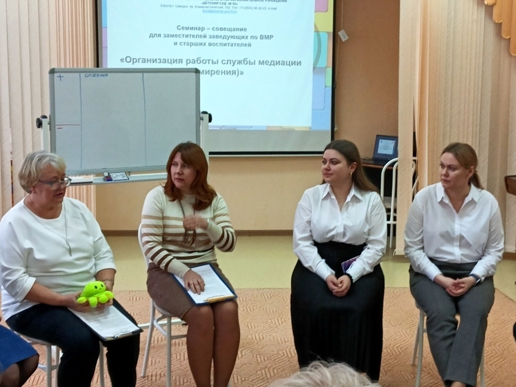 21 ноября состоялся семинар-совещание «Организация работы службы медиации (примирения)» для заместителей заведующих по воспитательно-методической работе и старших воспитателей дошкольных образовательных организаций, подготовленный Ресурсным центром образования Северска и МБДОУ «Детский сад № 52».