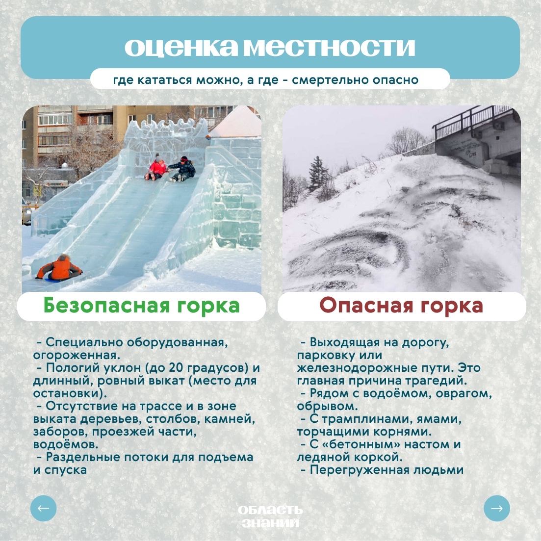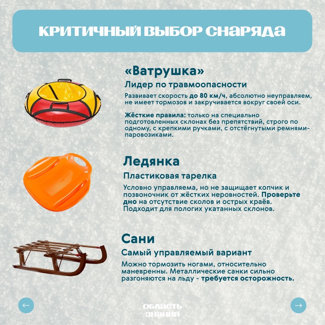 Эх, и все же, весёлая традиция ежегодно омрачается травмами: от ушибов до серьёзных переломов. Основная причина: катание с горки не требует специальных правил. На самом деле, такой активный отдых, сопряжённый с рисками, управлять которыми может и должен каждый.