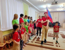 Наши старшеклассники поиграли с ребятами в подвижные игры, показали как нужно выносить флаг Российской Федерации маленьким юнармейцам, а по окончанию мероприятия вручили различные настольные игры и книги от юнармейцев ЗАТО Северск, Ресурсного центра образования Северска, Союза женщин России Томской области.