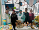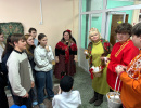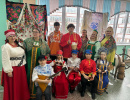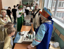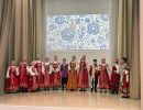 В рекреации школы № 90 расположилась выставка с мастер-классами, викторинами, игрой на ложках и балалайке, народными костюмами, загадками о народах России Центров этнокультурного образования нашего города: