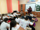 12 февраля, школа № 196. Наталья Александровна Неволина — молодой педагог, но урок — сложный: 1-й класс, интегрированный урок (окружающий мир + труд), тема «Домашние и дикие животные». Путешествие по волшебному лесу, практическая работа, горящие глаза первоклашек